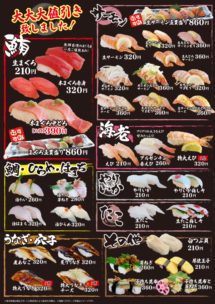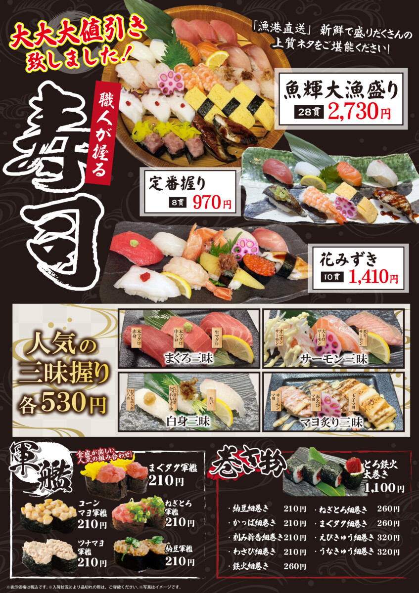 スタッフは元気一番大人のお客様はお寿司、お子様には串かつといったご利用が大変喜ばれております。ご家族でグループでのご来店をお待ちしております。