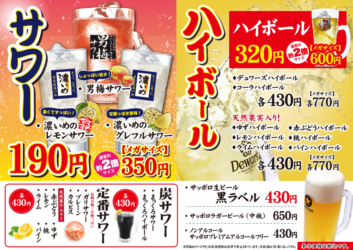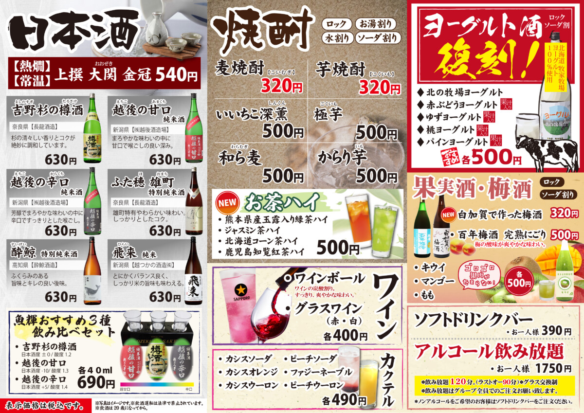 ※酒類の提供は、20:30まで